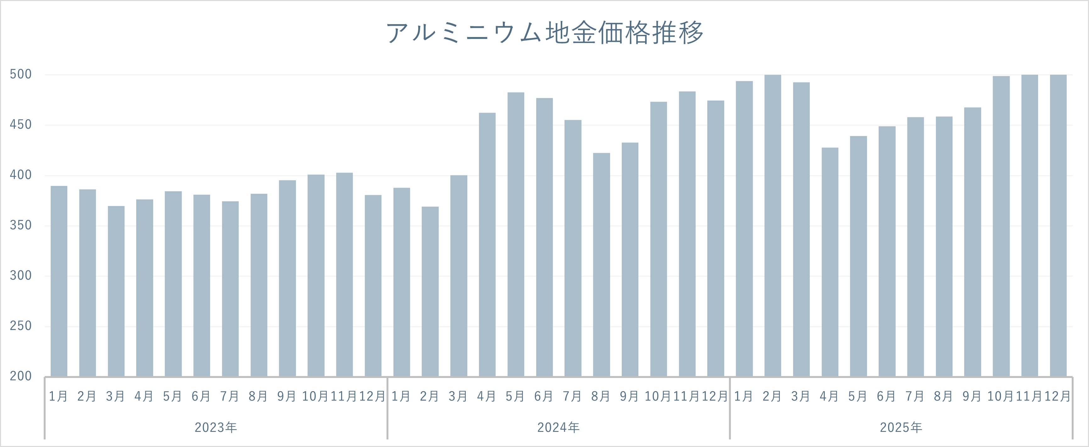 アルミニウム地金価格相場推移表(参考値)