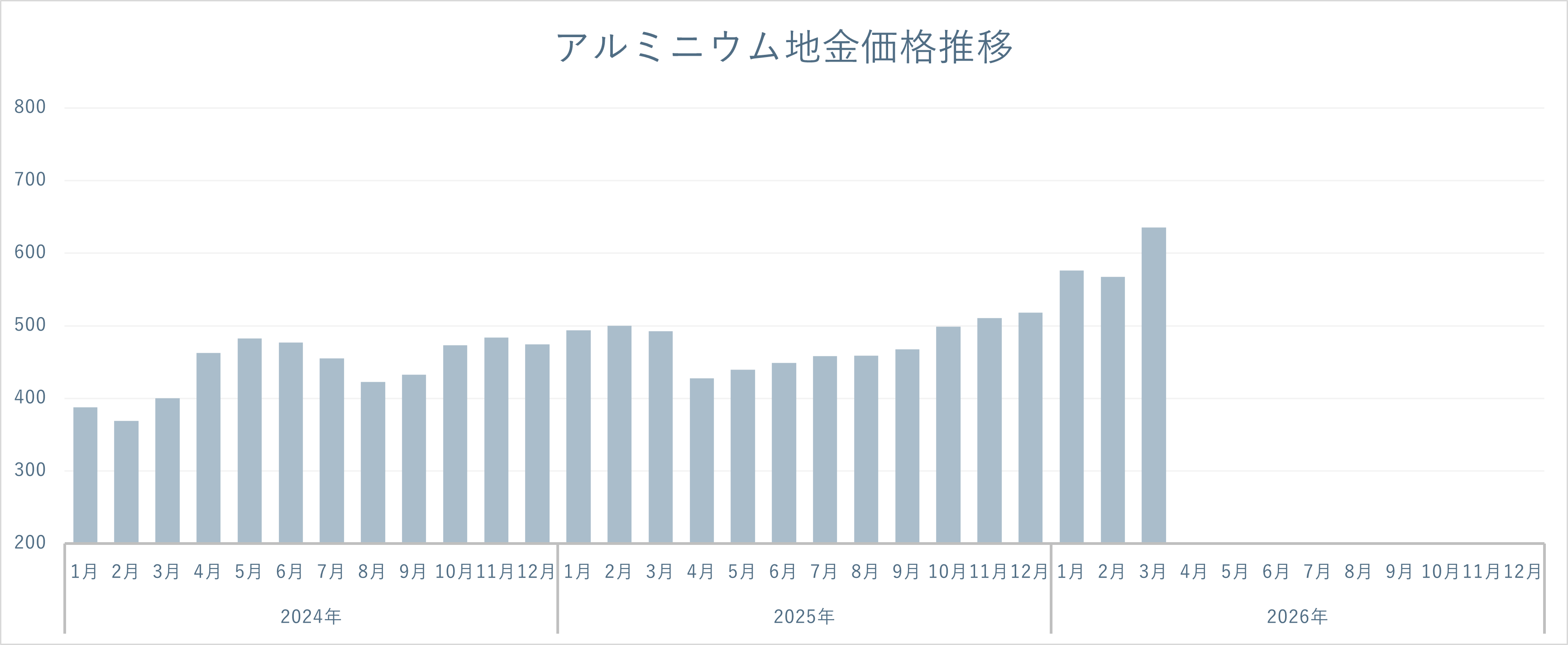 アルミニウム地金価格相場推移表(参考値)